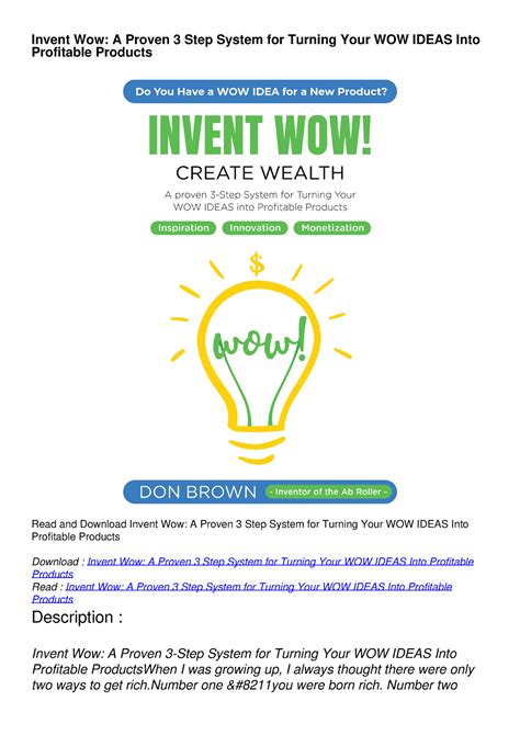 Free Reading Invent WOW: A Proven 3 Step System for Turning Your WOW IDEAS Into Profitable Products Doc Google eBookstore